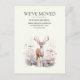 "We've moved" change of address / moving announcement postcard with the painting of a deer with large antlers in the forest.