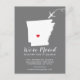 Modern moving announcement featuring the state of ARKANSAS, with a red heart & airplane set on a grey background. The background colour can be changed easily by clicking personalize and then click to customize further to view our colour picker. From there you can also move the airplane & heart! Contact our shop if you require help or need another state.
