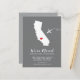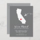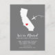Modern moving announcement featuring the state of California with a red heart & airplane set on a grey background. The background colour can be changed easily by clicking personalize and then click to customize further to view our colour picker. From there you can also move the airplane & heart! Contact our shop if you require help or need another state.