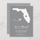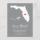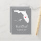 Modern moving announcement featuring the state of Florida with a red heart & airplane set on a grey background. The background colour can be changed easily by clicking personalize and then click to customize further to view our colour picker. From there you can also move the airplane & heart! Contact our shop if you require help or need another state.