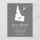 Modern moving announcement featuring the state of IDAHO, with a red heart & airplane set on a grey background. The background colour can be changed easily by clicking personalize and then click to customize further to view our colour picker. From there you can also move the airplane & heart! Contact our shop if you require help or need another state.