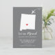 Modern moving announcement featuring the state of NEW MEXICO with a red heart & airplane set on a grey background. The background colour can be changed easily by clicking personalize and then click to customize further to view our colour picker. From there you can also move the airplane & heart! Contact our shop if you require help or need another state.