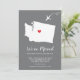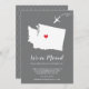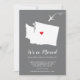 Modern moving announcement featuring the state of WASHINGTON with a red heart & airplane set on a grey background. The background colour can be changed easily by clicking personalize and then click to customize further to view our colour picker. From there you can also move the airplane & heart! Contact our shop if you require help or need another state.