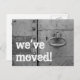 Moving postcards with door knocker and keyhole. Custom move text; We have moved! Add your new address on the back. Modern moving cards for new home or business location.