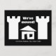 Moving postcards with funny house and new address. A man's home is his castle. Funny Housewarming party, Change of address announcement cards.