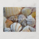 Pretty textured seashells moving postcard. Announce a move to a coastal area or beach condo. "We have moved" text on the front is easy to change for a single person. Customize text on the back with name(s) and new address over a shimmering water image.