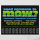 Eye catching flyer to help you find work and earn extra money in lawn care. Bold, bright letters that attract attention in a unique way, " Need someone to mow?" Customize text in this template to personalize to your specific needs. Cut between the numbers to that people can take and call at their convenience. Hang this flyer in area businesses such as delis, libraries, supermarkets, parks, pizzerias etc. This is the season to really promote your business!