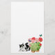 Original fine art design of Moxie the cat watching butterflies on Geranium plants by designer Carolyn McFann of Two Purring Cats Studio on customizable stationery.