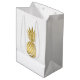 Ce sac cadeau blanc brillant présente un design chic à l'ananas doré, parfait pour les fêtes tropicales, les événements sur la plage, ou des cadeaux élégants. Idéal pour les anniversaires, les mariages de destination, ou l'emballage boutique avec flair.