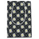 Ce sac cadeau est affiché dans une jolie impression de fleurs marguerites. Taille moyenne affichée brillante