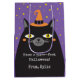 Un mignon chat d'Halloween noir avec un casquette décore ce sac cadeau. Personnalisez-le pour Halloween. Conçu pour vous par Blackberry Boulevard.
