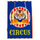Parfait pour presque toutes les fêtes ! Un Tigre de Cirque audacieux saute à travers un anneau de feu avec Big Top rouge et White Stripes! ! Texte : CIRCUS Visitez PartyFactory Collections pour assortir les fournitures de la fête Circus Tiger !