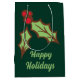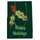 Moyen Sac cadeau de Noël avec houx vert