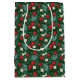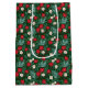 Des poinsettias de Noël brillantes sur un sac cadeau assorti.
