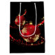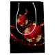 Sac cadeau de Noël dans un imprimé d'ornements de Noël rouge et or. Customisez cet objet ou achetez tel quel.