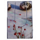 Un matin d'hiver glacé, une poule solitaire passe à travers la neige parmi les cônes de pin tombés, en se régalant sur les baies rouges vifs sur le sol.