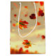 Sur le fond d'une érablière solitaire à flanc de colline, des feuilles d'automne orange et jaune vif flottent sur la brise.