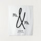 Mr. and Mr. gay wedding backdrop personalized with their surname or names, and the event date or established year. Design in black and white with an elegant yet modern style for a wedding party, reception, or as decoration for the ceremony.