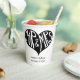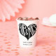 Add a fun touch to your wedding with these personalized paper cups. They feature a bold graphic at the centre with "Mr & Mrs" in white hand-drawn lettering inside of a black heart shape. These party supplies are ready to be personalized with the name of the bride and groom and their wedding date.