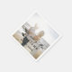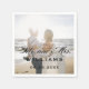 Wedding napkins feature "Mr. and Mrs." in an elegant black calligraphy script font with custom monogram text that can be personalized with the bride and groom's married last name and wedding date. An engagement photo can also be included as the background image.