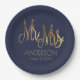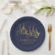 Mr. and Mrs. Blue and Gold Elegant Add Name Date Paper Plate