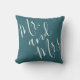 Mr. and Mrs. Calligraphy Peacock Blue (Teal, Aqua) Throw Pillow