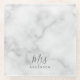 Mr and Mrs | Elegant White Marble Modern Script Glass Coaster