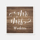 "Mr and Mrs" Elegant White Script on Rustic Wood Napkin