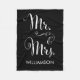 This cozy fleece blanket features a fancy script font of Mr. & Mrs. and can be personalized with a last name. Makes a great gift for newlyweds or couples.