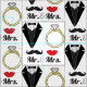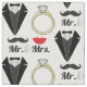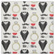 Mr. and Mrs. Lips Moustache Ring Tuxedo Wedding Fabric