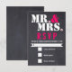 Mr. and Mrs. Modern typography black hot pink chalkboard wedding RSVP reply/response card featuring the Mr. and Mrs. courtesy titles in white, the ampersand in hot pink fuchsia and the period in white with a hot pink heart in it. This modern and contemporary, elegant wedding template design with has a vintage rustic flair to it. It is fun and trendy and is part of a wedding collection or set fully customizable perfect for a winter wedding.