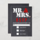 Mr. and Mrs. Modern typography black red chalkboard wedding RSVP reply/response card featuring the Mr. and Mrs. courtesy titles in white, the ampersand in red and the period in white with a red heart in it. This modern and contemporary, elegant wedding template design with has a vintage flair to it. It is fun and trendy and is part of a wedding collection or set fully customizable perfect for a casual rustic winter wedding.