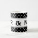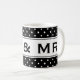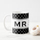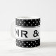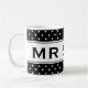 Funny Mr and Mrs mug for newly weds. Ideal for weddings, wedding receptions, rehearsals and bachelor or bachelorette party. Elegant black and white polka dot pattern design. Personalizable classy text and background colour. Make it a mister and misses favour gift! Change background colour behind dots to match any wedding theme. Any colour is possible ie pink, red, turquoise, grey, blue, green, orange etc. Personalize it with your own text and choose any font from elegant to modern. White polka dotted pattern design for just married couple.
