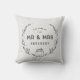 Mr and Mrs new home or newly wed cushion. Hand drawn floral and little house details. Background colour can be altered.