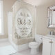 Mr and Mrs unique wedding gift ideas. Personalized Shower Curtain with subtle swirls and platinum accent circle framing off YOUR TEXT. Change Mr. and Mrs. To Your Text and Type in the Couple's MONOGRAM and Your Special Wedding message to the couple. DELETE any text. You can even change the Tauoe Champagne Colour shade a bit or call Linda to change it for you. Call Linda: 239-949-9090