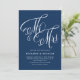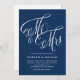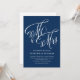 Welcome guests to your event with this customizable wedding invitation. It features rustic calligraphy and simple typography. Personalize this navy blue wedding invitation by adding your wedding details. This script wedding invitation is perfect for any wedding theme or season.