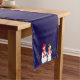 Here's a cute Holiday table runner that will delight kids of all ages! It features a colourful border on each end of string Christmas tree lights, all draped behind Mr. and Mrs. Snowman. At the middle is bright green stylized text that wishes everyone a MERRY CHRISTMAS. The colourful images are set against a navy blue background to make them really stand out. Festive and fun!