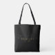 Featuring modern, elegant typography, this chic black-and-gold tote bag can be personalized with your name and special date. Designed by Thisisnotme©