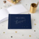 This guest book offers the perfect place for your friends and family to pen their signatures and heartfelt messages. Crafted from premium materials, it features adorable hearts and the titles 'Mr and Mrs' in a sophisticated gold script, all set upon a chic, dark navy midnight blue background. Customize it with your family name and the date of your wedding to make it uniquely yours. This treasured memento will act as a lovely token of your special day for many years.