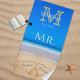 Wedding Hearts in Sand Family Monogram, Brides Mr. Beach Towel.