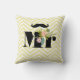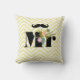 Mr Moustache Pale Yellow White Teal Zig Zag Throw Pillow