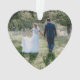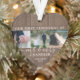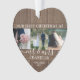 Celebrate a joyful 1st holiday as a married couple with a custom 4 photo collage "Our First Christmas as Mr. & Mrs." heart-shaped acrylic ornament. All text and images on this template are simple to personalize. (IMAGE PLACEMENT TIP: An easy way to centre a photo exactly how you want is to crop it before uploading to the Zazzle website.) The modern farmhouse style design features a rustic brown faux wood border, handwritten style script calligraphy names & year, and four pictures of your choice. This unique wedding keepsake adds a stylish elegant touch to the newlyweds' Xmas home decorations. Example photo on front middle & on back is by Tim Stagge (Source: @tim_stagge on Unsplash).