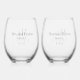 Wedding stemless wine glasses for the bride and groom at their wedding reception. On the back, add the names of both the bride and groom and their wedding date. All text is customizable, so if you want text on one side only, just delete the text you would like to remove. These wine glasses are perfect when you customize them for your bridal party for the reception, bachelor party, bachelorette party, or other wedding event. Contact me for assistance with your customizations or to request additional matching or coordinating Zazzle products for your event.