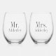 Mr. Mrs. Bride Groom Wedding Customized Stemless Wine Glass