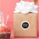 Minimal and timeless round wedding label in black-and-white calligraphy with tiny golden hearts. A classy touch for wedding favours, gift bags, or sealing envelopes.