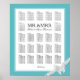 Select the background colour and text colour of this white bow design wedding seating chart with room for 22 tables. Add names and align as needed. Poster is completely printed, there is no real bow or ribbon attached.