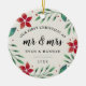 Celebrate your first Christmas as a married couple with this charming and festive ornament. Design features "our first Christmas as Mr. & Mrs." and the year in black lettering, surrounded by red poinsettia flowers and green holiday foliage on a soft ivory background. Add a photo to the back with matching holiday botanical embellishments.