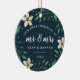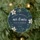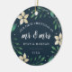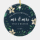 Celebrate your first Christmas as a married couple with this charming and festive ornament. Design features "our first Christmas as Mr. & Mrs." and the year in white lettering, surrounded by ivory poinsettia flowers and green holiday foliage on a rich navy blue background. Add a photo to the back with matching holiday botanical embellishments. Designed to coordinate with our Bright Boughs holiday collection.