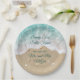 The playful and fun saying, Sandy Toes Salty Kisses... Mr. & Mrs. accent these paper plates on a background of turquoise blue water, beach sand, seashells, starfish and sand dollars, making it a perfect accent for your beach, tropical or destination wedding or rehearsal dinner. These paper plates are further personalized with the wedding date and the happy couple's new last name. If additional items are needed for your wedding just contact us at prettyfancyinvites@gmail.com with your request.