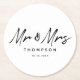 Mr. & Mrs. Modern Black White Script Wedding Round Paper Coaster